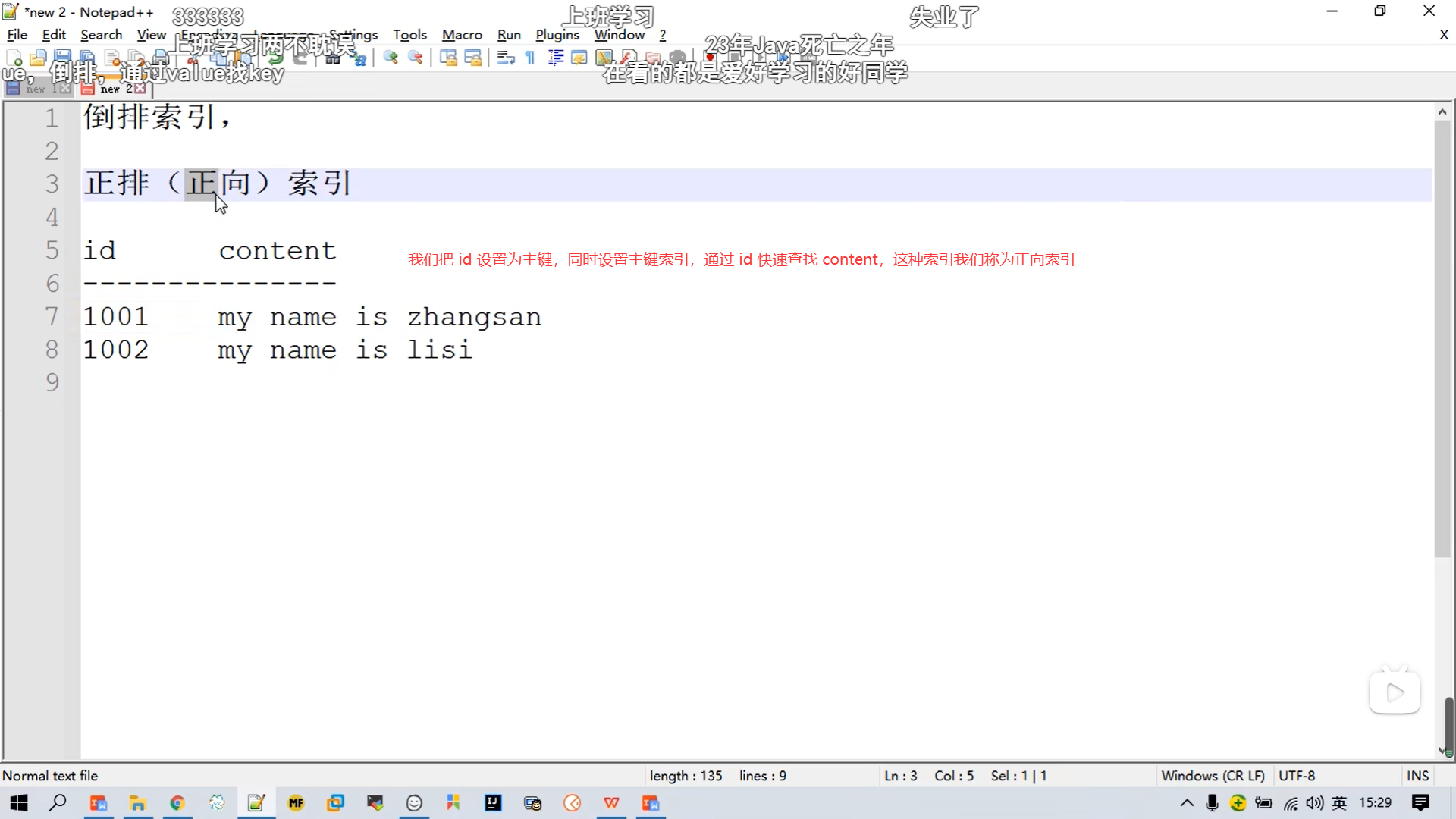 - 传统的关系型数据库如 MySQL ,可以根据 id 快速的查询到表中对应数据。但是如果根据字段的内容检索数据,效率就比较低了。对 id 我们可以设置主键创建主键索引提高查询效率。但是对字段内容,没有办法创建索引提高查询效率。