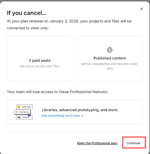 为了防止再被坑我还是先取消订阅吧,听说淘宝上有更便宜Figma套餐的,后面有时间研究一下