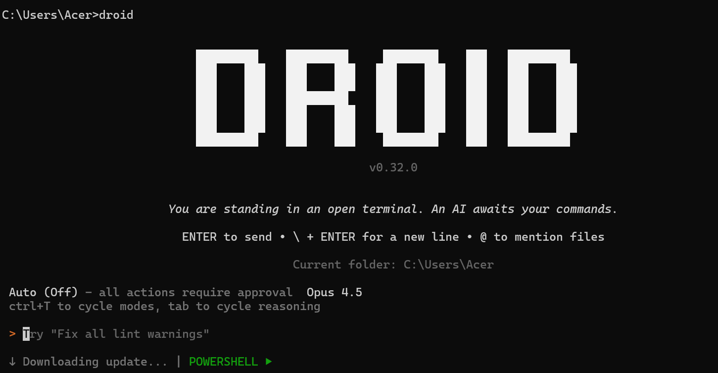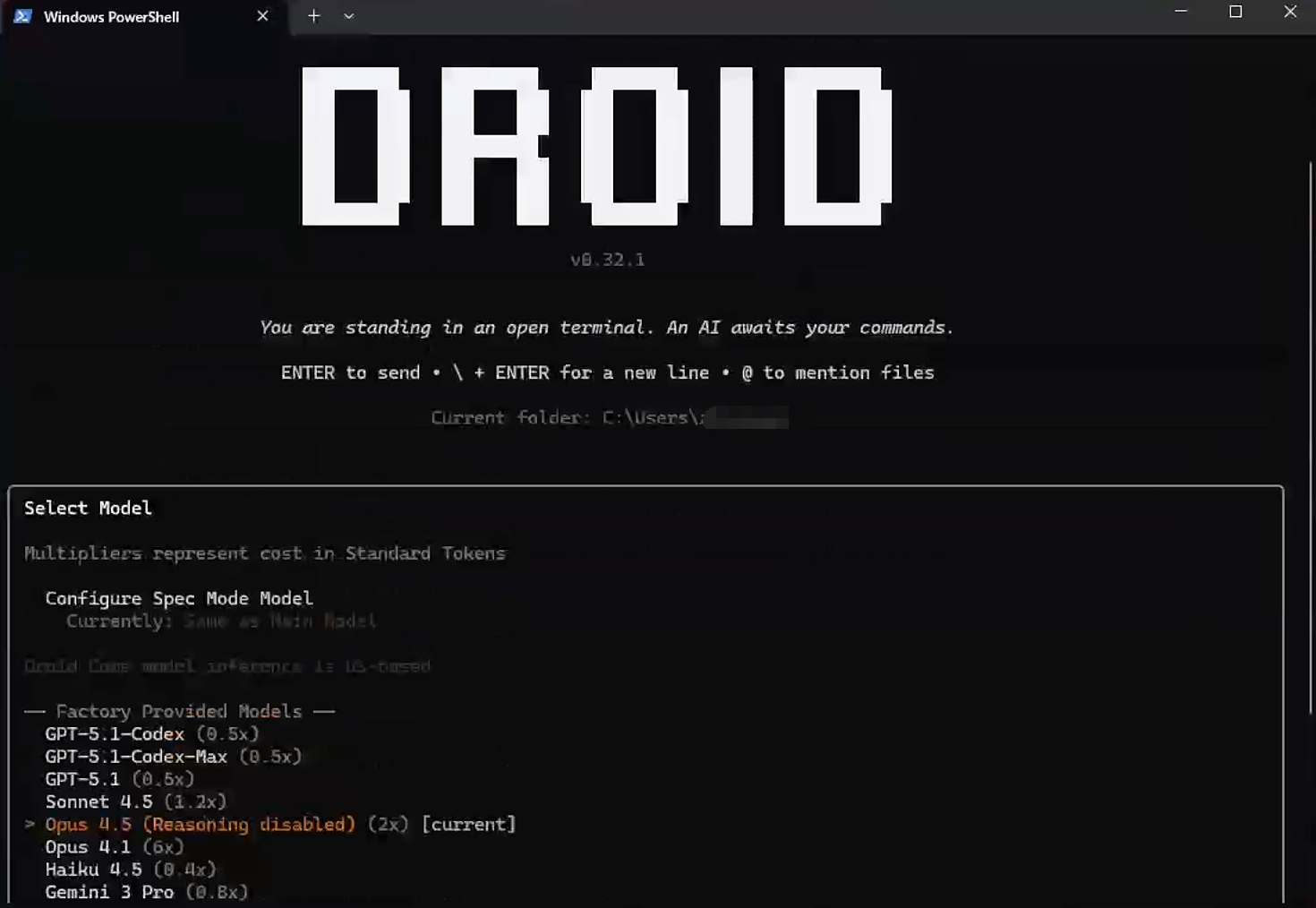 再次输入 droid ,好了 开始选择你喜欢的大模型开始codeing吧