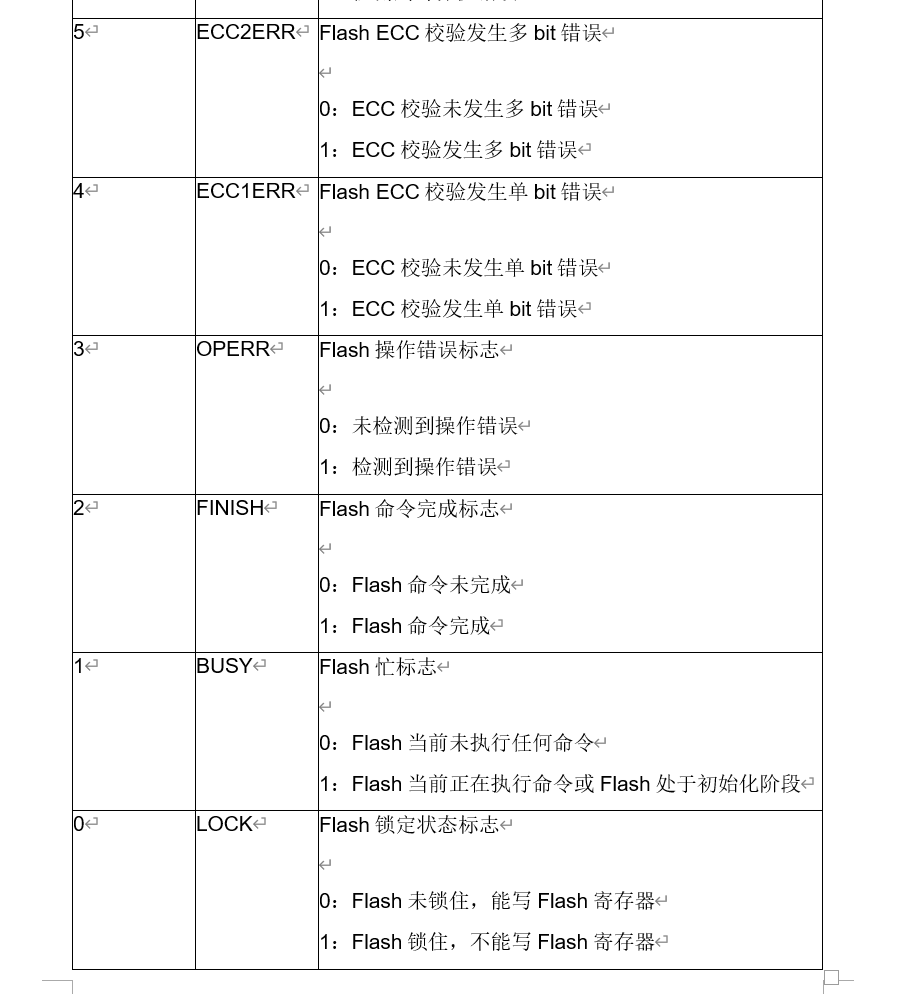- 通过检测EFLASH_STATE状态寄存器的FINISH位来判断该命令是否执行完成,检测OPERR位、WPERR位等状态位来判断该命令执行是否发生错误;