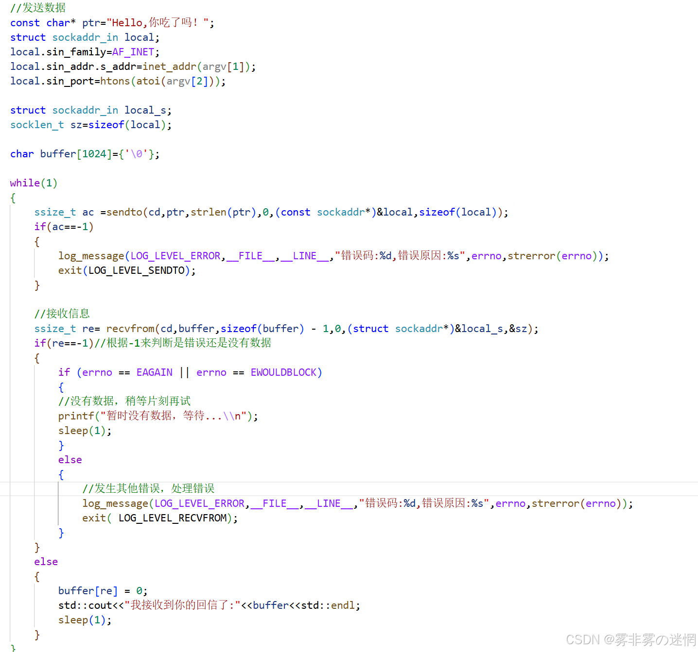 此时接收到数据,就卡在"recvfrom()"那里了,很正常: