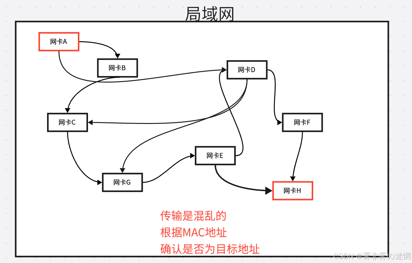 当数据被打包完成后会经过网卡发送到局域网:数据不是准确发送的,它需要一个个访问