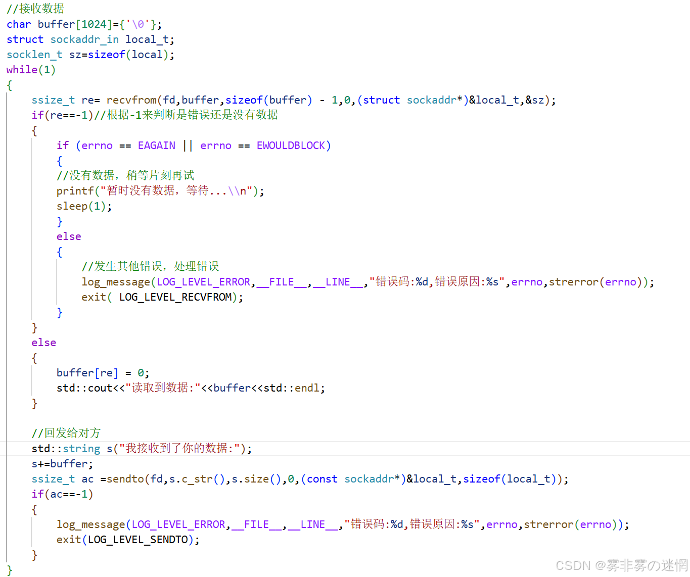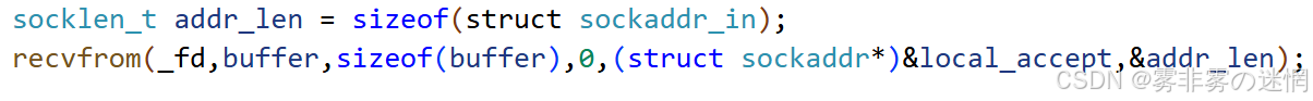 ssize_t re= recvfrom(fd,buffer,sizeof(buffer) - 1,0,(struct sockaddr*)&local_t,&sz);