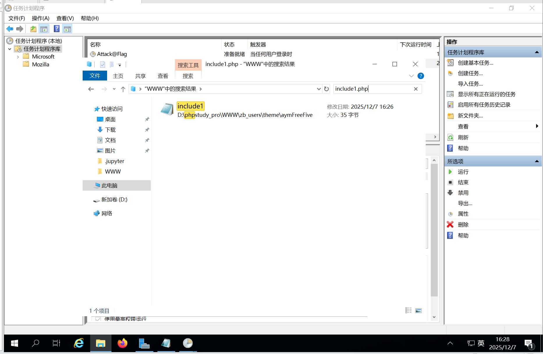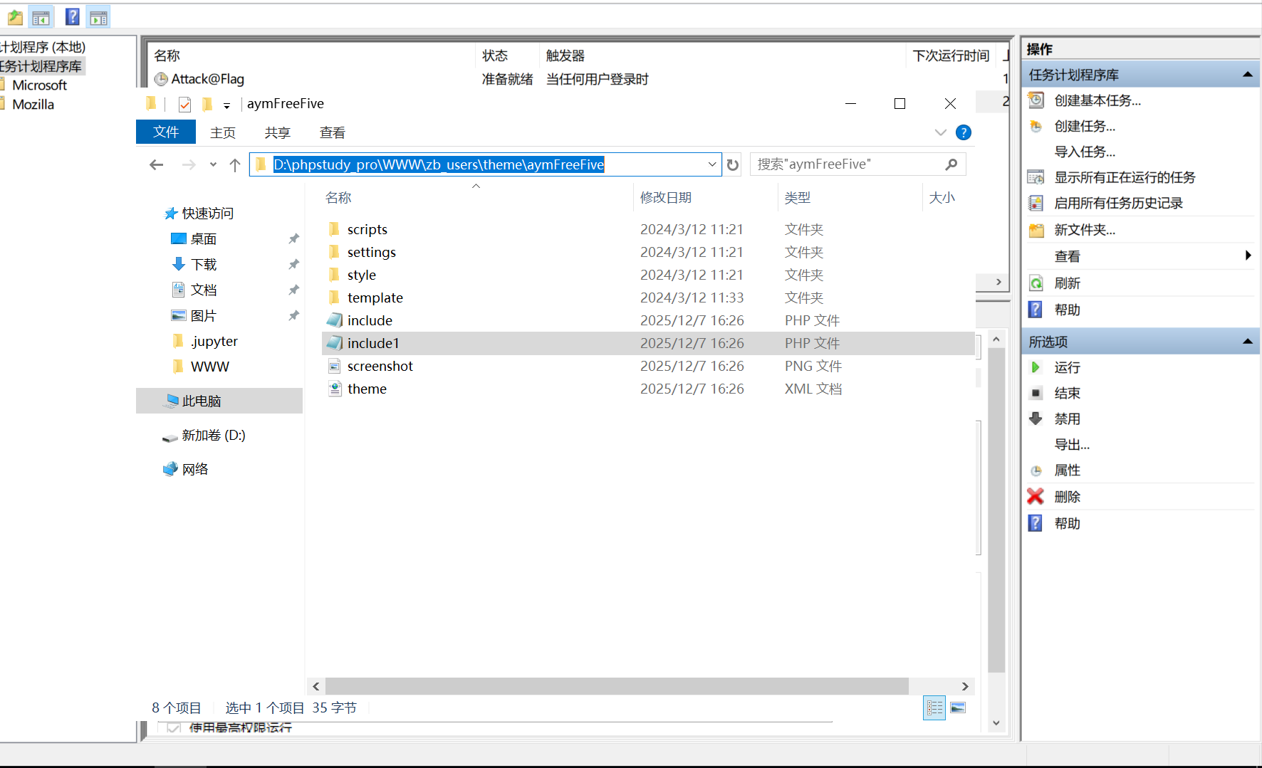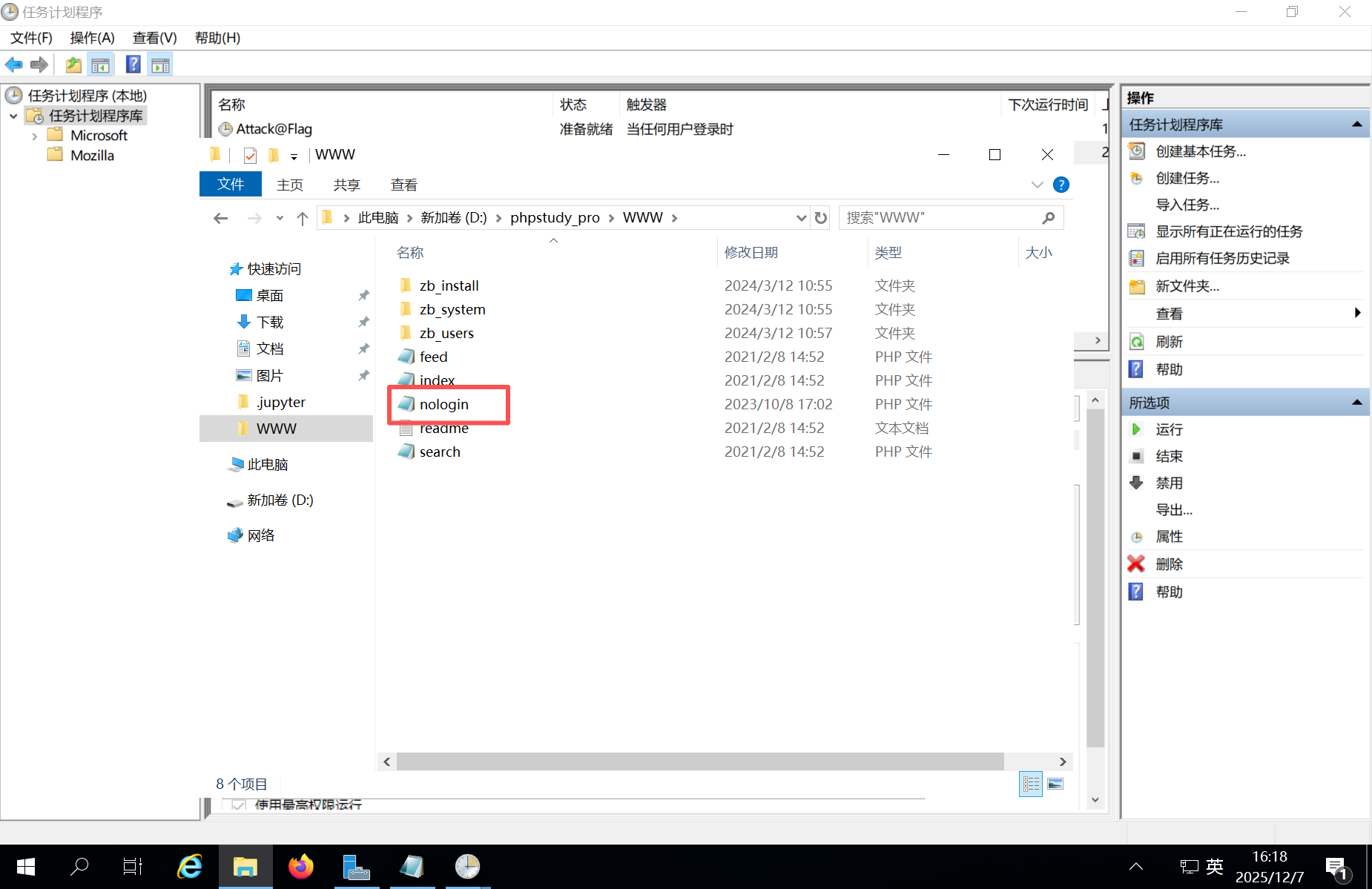 可以去分析一下404.php,没有东西,但是应急应该排查的是黑客是如何入侵的,有没有写计划任务,开机自启动,注册服务等,我们通过之前的分析可以知道黑客是通过web入侵的,后来有一个system.bat的脚本,这个脚本是如何启动的呢,看计划任务