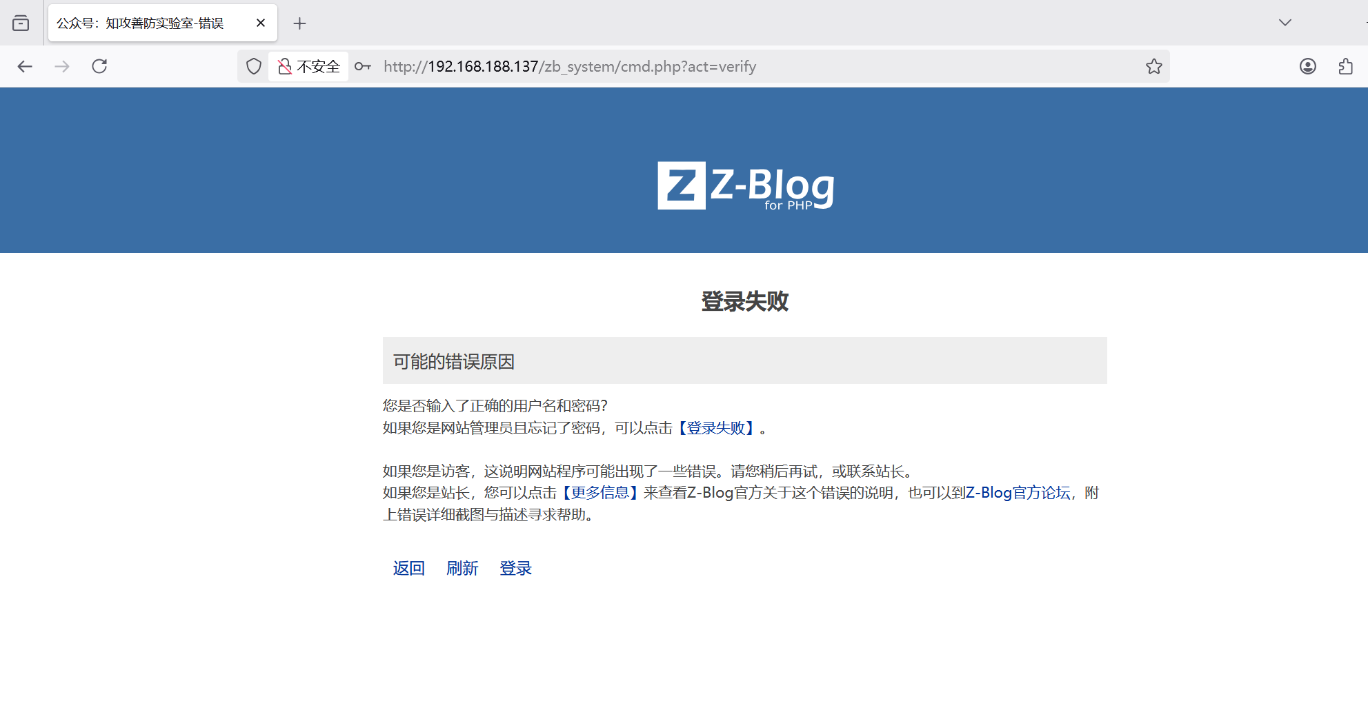 换字典爆破也不行,只能baidu z-blog忘记密码,或者爆破数据中的密码加密值,或者数据库使用新密码覆盖旧密码了,但是需要知道算法