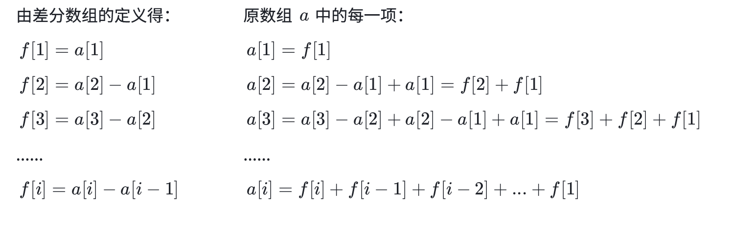 根据差分数组的性质 : f[i] += a[i], f[i+1] −= a[i]