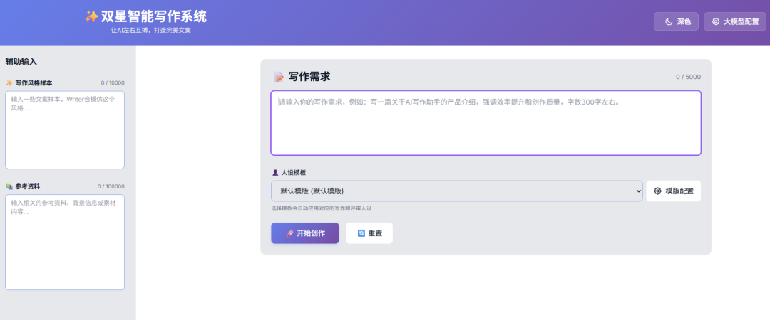 写作智能体根据输入的写作需求,文案风格和参考资料写初稿