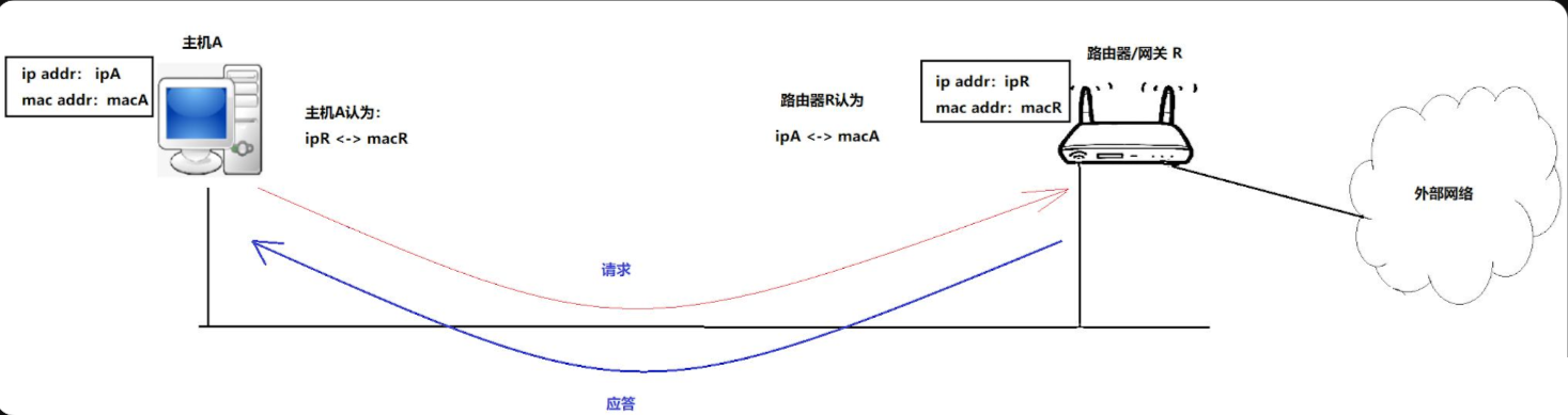 假设你和你的朋友在一个局域网里聊天,你的电脑(A)想给朋友的电脑R)发消息。正常情况下,你的电脑会广播一个ARP请求:"谁的IP是主机R?告诉我你的 MAC 地址。"然后主机R会回复它的MAC地址。