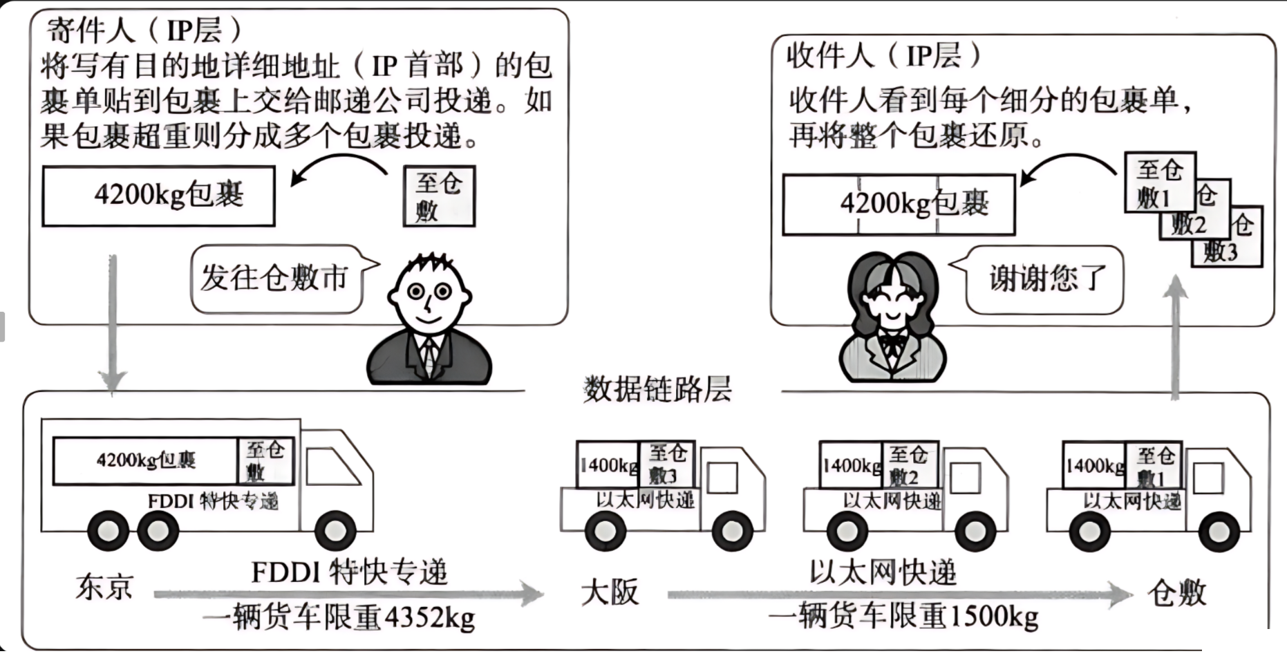 - MTU 相当于发快递时对包裹尺寸的限制. 这个限制是不同的数据链路对应的物理层, 产生的限制.