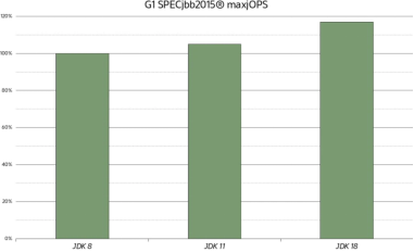 图2. G1d 的吞吐量增长,利用 SPECjbb2015 的 maxjOPS 测量