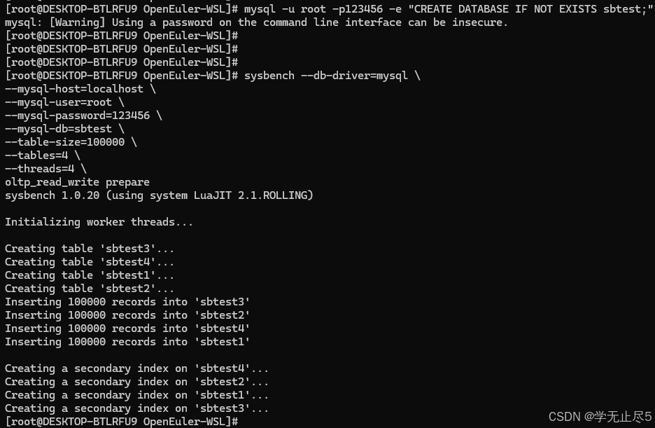 mysql -u root -p123456 -e "CREATE DATABASE IF NOT EXISTS sbtest;"