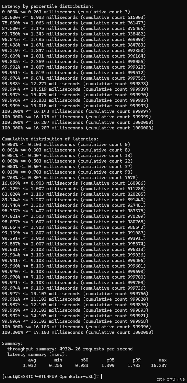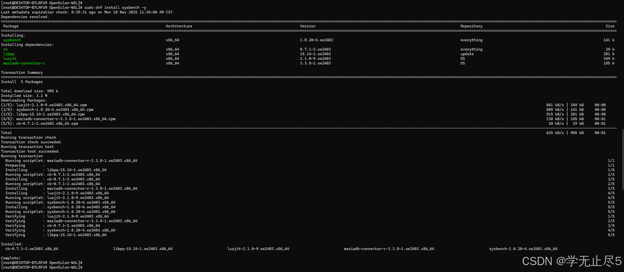 评测环境说明:基于本地物理机搭建的openEuler 24.03 LTS SP3系统,硬件配置为Intel i7-12700H处理器(14核20线程)、32GB DDR5内存、1TB NVMe固态硬盘;已完成系统基础环境配置,包括gcc 11.3.0编译环境、yum源优化及内核参数调优(参考https://byteqqb.blog.csdn.net/article/details/154481488?spm=1001.2014.3001.5502搭建)。
