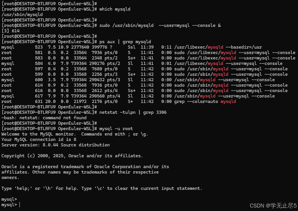 # 2. 手动启动MySQL(路径为/usr/sbin/mysqld)