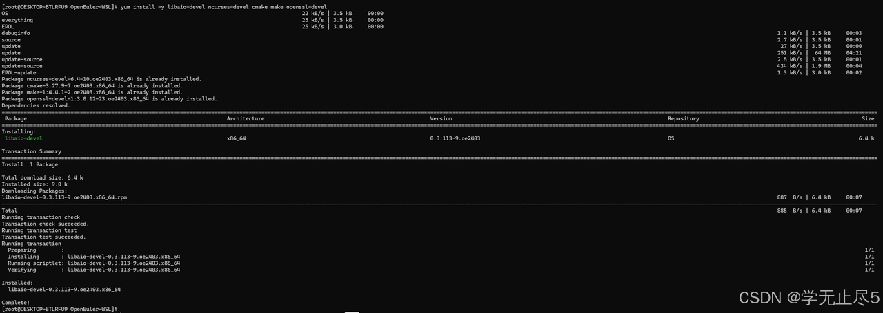 yum install -y libaio-devel ncurses-devel cmake make openssl-devel