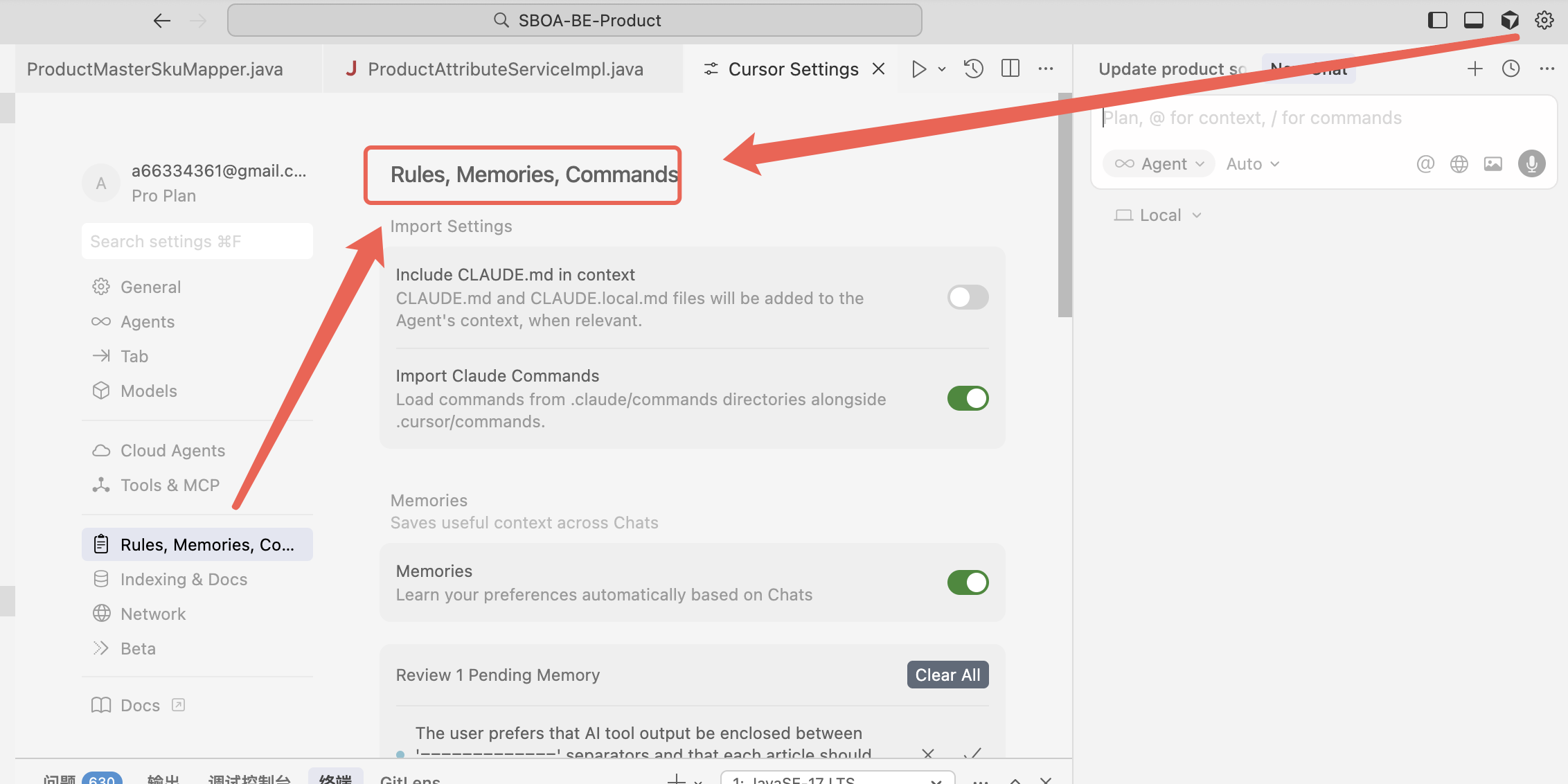本文我将结合个人经验,和大家分享下如何使用 Cursor 的三大功能 ------Rules(规则)、Memories(记忆)和 Commands(指令),实现后端的高效率开发!