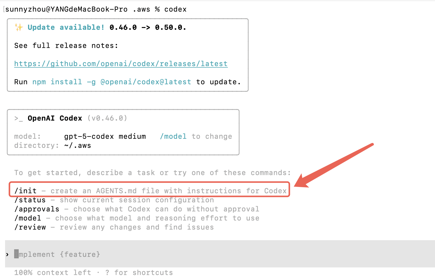 技巧: 如果你已有一定规模的项目,不妨借助强大的 GPT 模型来生成 AGENTS.md 初稿。例如,可以使用最新的 GPT-5-CodeX 模型,让它基于项目代码生成一份结构化说明文档,我一般都是直接使用 CodeX,在根目录执行下 /init 去进行生成!