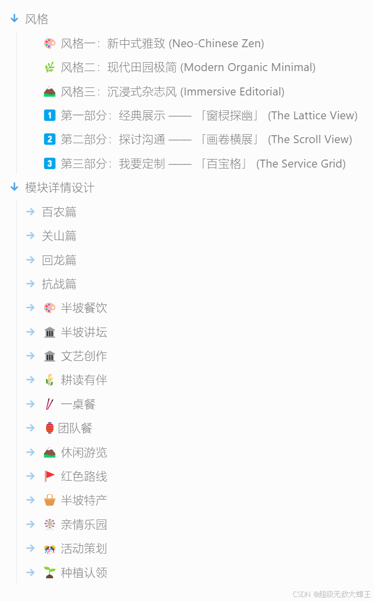 选择完风格之后, 我们就需要分tab和模块了,通过风格让ai给你排列布局, 如果你不满意, 可以再进行微调 (这里我也是调了不少次 / 笑哭)