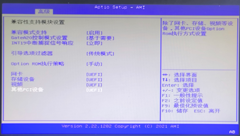 - 其他PCI设备 (Other PCI Devices):设置为"UEFI"