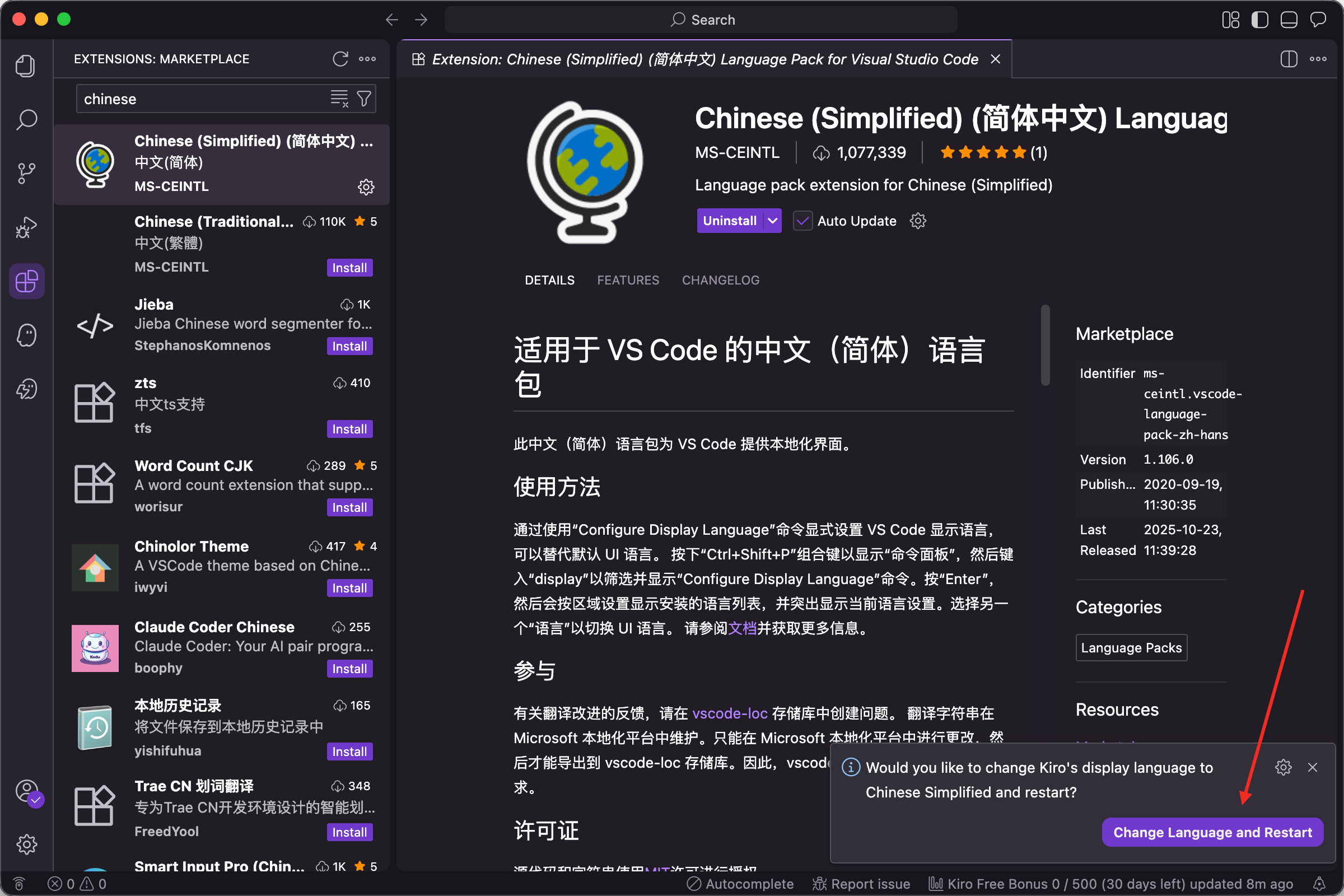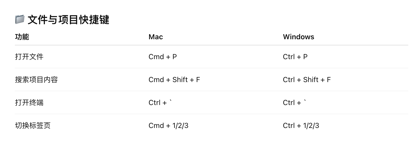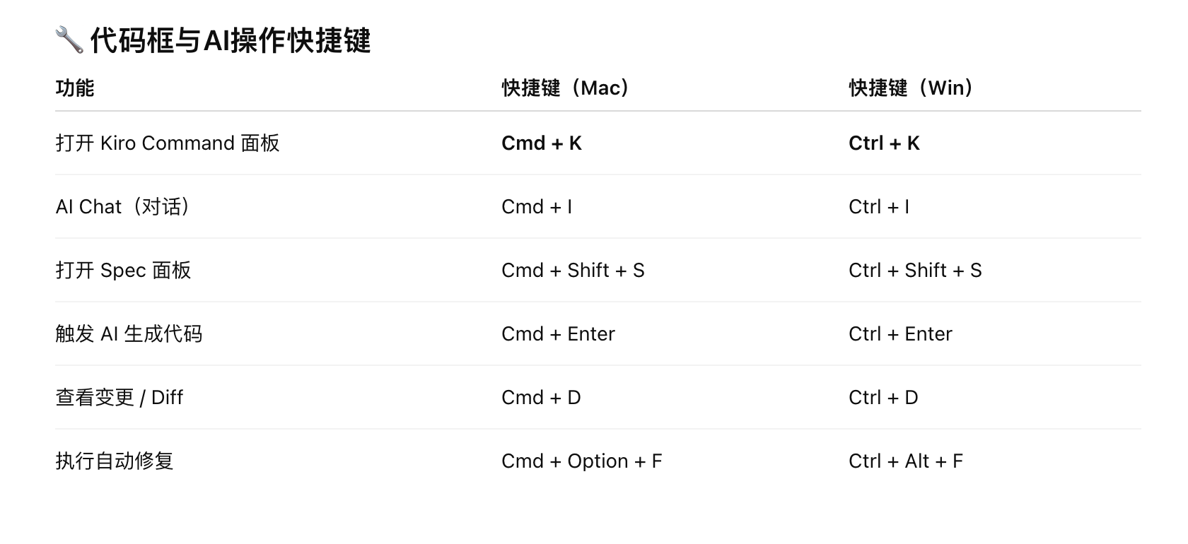 Kiro 基于 VS Code 技术栈,因此快捷键与 VS Code 大部分一致。