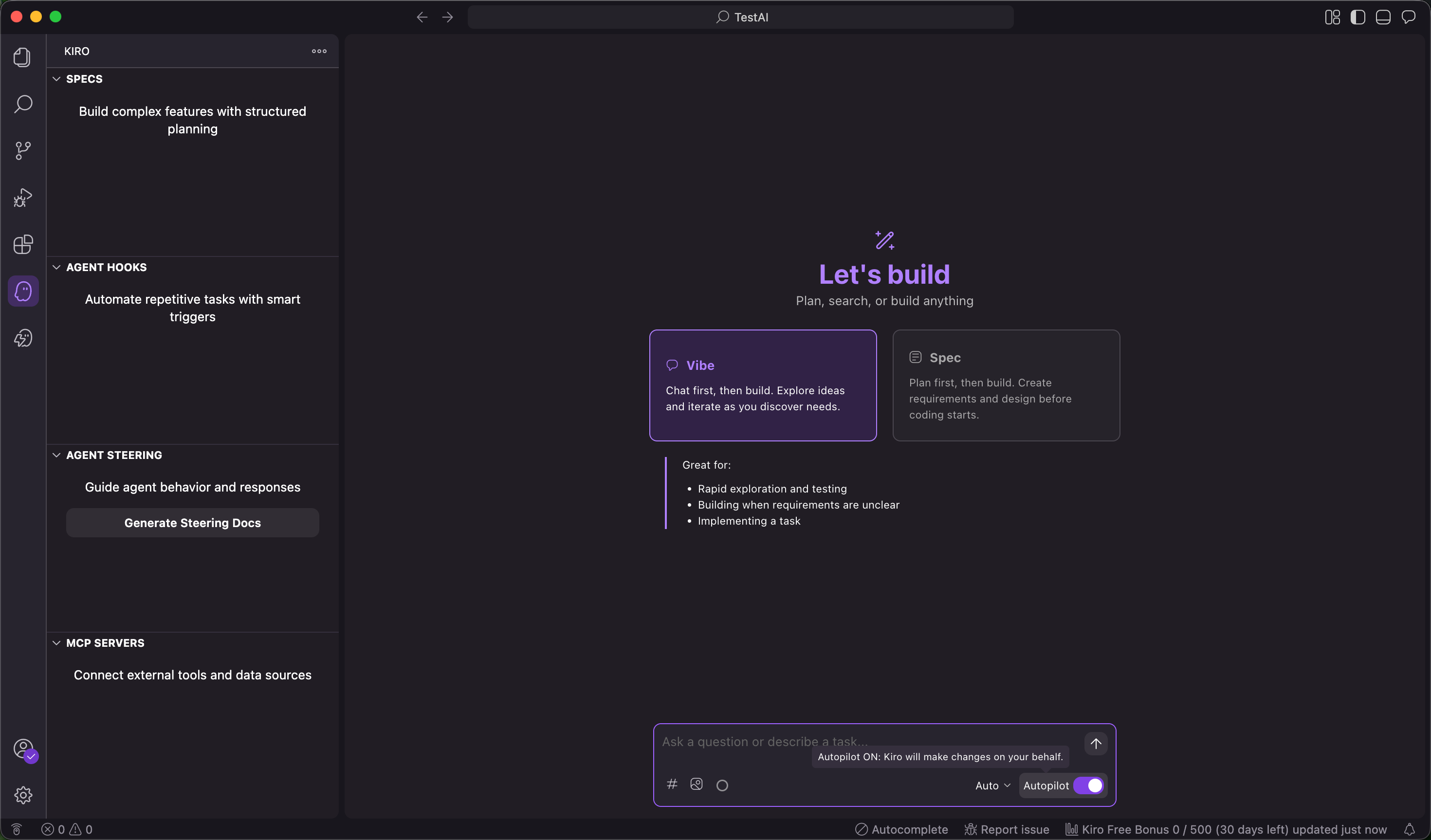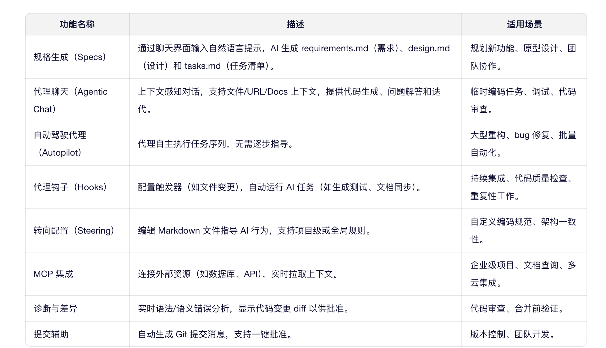 Kiro 是亚马逊(通过 AWS)推出的代理式(agentic)AI 集成开发环境(IDE),于 2025 年 7 月进入公共预览阶段。它基于 VS Code 的开源版本(Code OSS)构建,旨在帮助开发者从概念原型快速过渡到生产级代码,强调"规范驱动开发"(spec-driven development)。不同于传统的"随意编码"(vibe coding),Kiro 通过结构化规格文件(如 requirements.md、design.md 和 tasks.md)作为单一真相来源,确保 AI 代理在复杂项目中保持清晰、 traceable 的开发流程。它支持 Claude Sonnet 4.0 和 3.7 等模型作为后端引擎,集成 Amazon Q 提供深度代码分析和代理辅助。目前(截至2025年12月06号)免费试用(有使用限额),无需 AWS 账户即可下载使用。Kiro 被视为开发者生产力的革命性工具,能将开发时间从数周缩短到几天,尤其适合云原生、企业级和 AI 驱动的项目。它独立于 AWS 云服务,支持多云和本地环境。