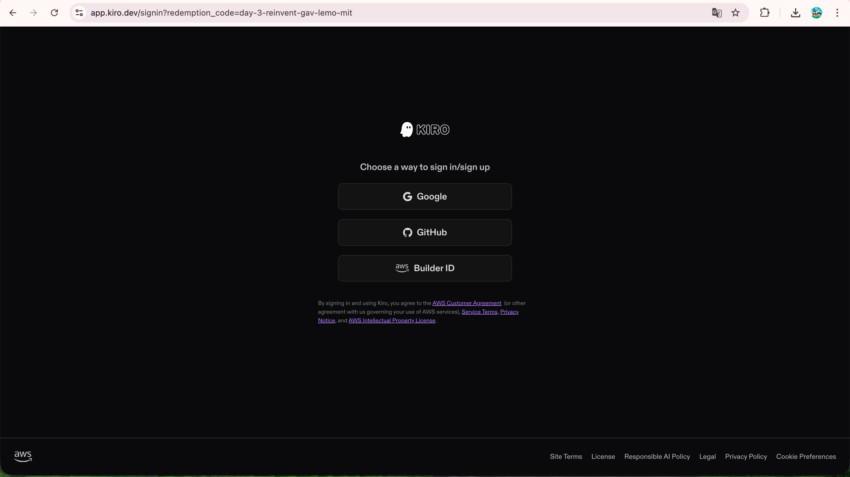 活动随时截止,速戳链接注册:https://app.kiro.dev/signin?redemption_code=day-3-reinvent-gav-lemo-mit