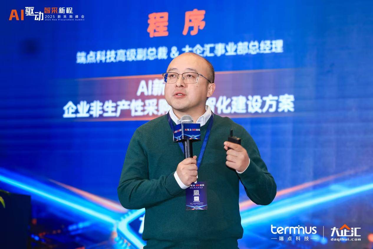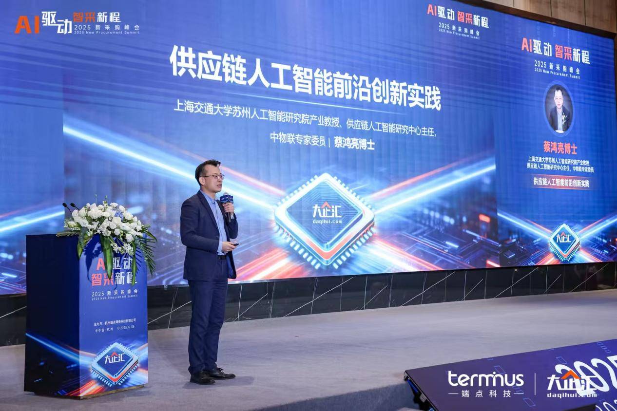 12月5日,由杭州端点网络科技有限公司(以下简称"端点科技")主办的2025新采购峰会在杭州圆满落幕。峰会以「AI驱动,智采新程」为主题,汇聚数百家大型企业集团,链接众多采购与供应链管理者,以及供应链生态领域的重量级嘉宾,共同探寻AI在供应链中从蓝图到现实的关键落地路径,思辨智能技术驱动供应链从效率工具迈向战略价值蓝图的新未来。