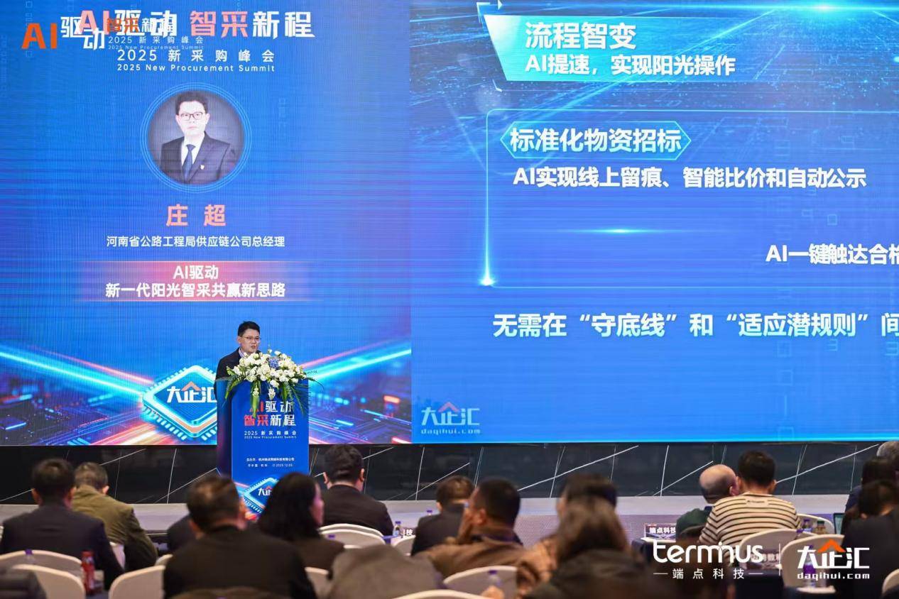 河南省公路工程局供应链公司总经理庄超在《AI驱动,新一代阳光智采共赢新思路》分享中,以"正念共赢"为核心阐述AI如何重塑采购生态, AI赋能采购正将集中采购从利益"博弈场"重塑为协同"共赢圈"。 通过全流程透明化与智能风控,AI不仅筑牢了廉政防线,更赋能年轻从业者从执行者成长为战略引领者,在"阳光采购"中实现个人与企业的共同价值提升。