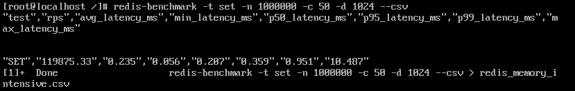 redis-benchmark -t set -n 1000000 -c 50 -d 1024 --csv > redis_memory_intensive.csv &