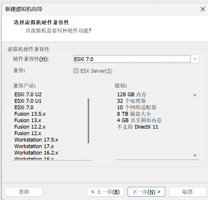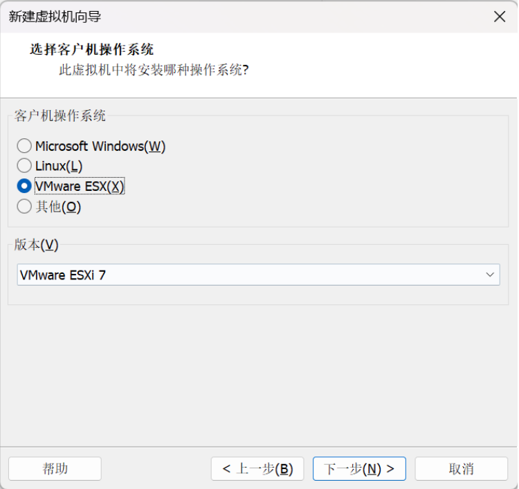 选择 "VMware ESX" -> "VMware ESXi 7.x"
