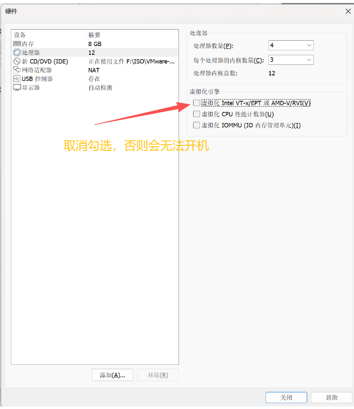 *** 因使用vmware无法开启虚拟化原因,关闭虚拟化选择***