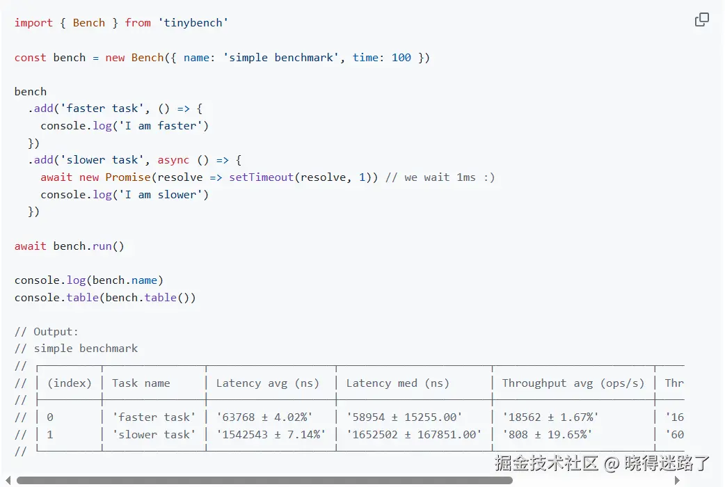 - Tinybench 6.0:一款轻量简洁的基准测试库。