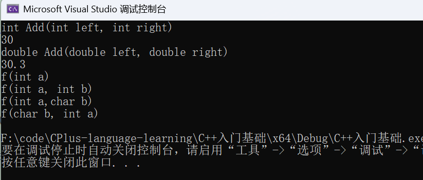 通过打印的结果我们就会发现C++的功能比C强大多了,只要形参不同就能找到对应形参的同名函数。