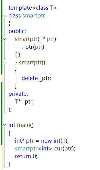上图中就展示了智能指针是如何运作的,将新申请到的空间给到智能指针之后,不再需要手动释放空间,因为cur 会在生命周期结束时自动析构,析构就销毁了