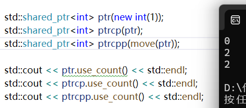 可以看到ptr由于资源被转移,引用计数为0