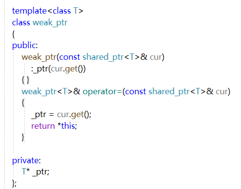 weak_ptr 内部支持expired检查指向的资源有没有过期(没过期就会返回0,过期就会返回1),同时还提供了use_count接口 来获取指向的shared_ptr的引用计数,还可以调用lock 来返回一个shared_ptr对象用来管理自己指向的资源(weak_ptr 是没法访问指向资源的),如果指向资源已经过期,就会返回一个空的shared_ptr对象
