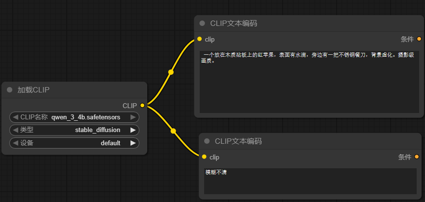文本编码需要模型驱动,我们输入的是中文,模型使用 qwwen_3_4b模型
