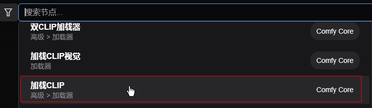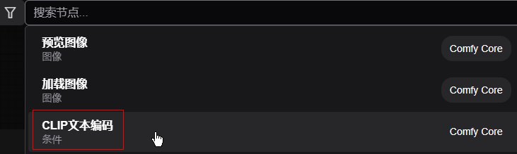 在操作台上双击鼠标左键,可以搜索节点。现在我们需要的是对 CLIP 文本编码,所以选它。 要添加两个,一个正向(你要啥),一个反向(你不要啥)