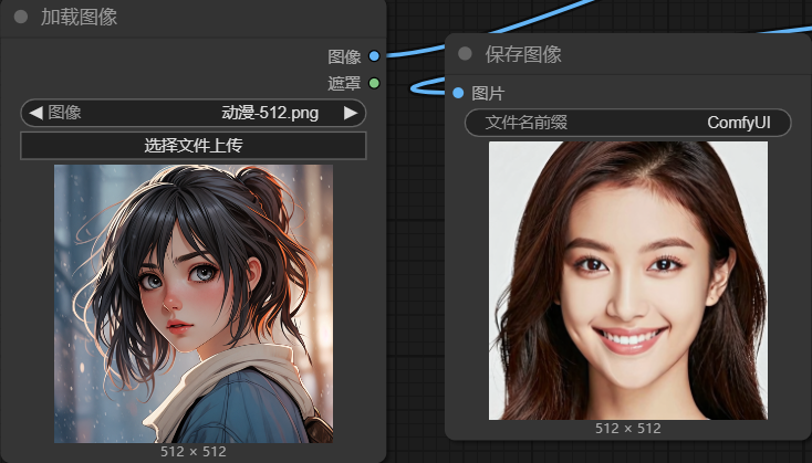 我上传了一个动漫图片,为了快速出图,我将图片裁剪到了 512x512