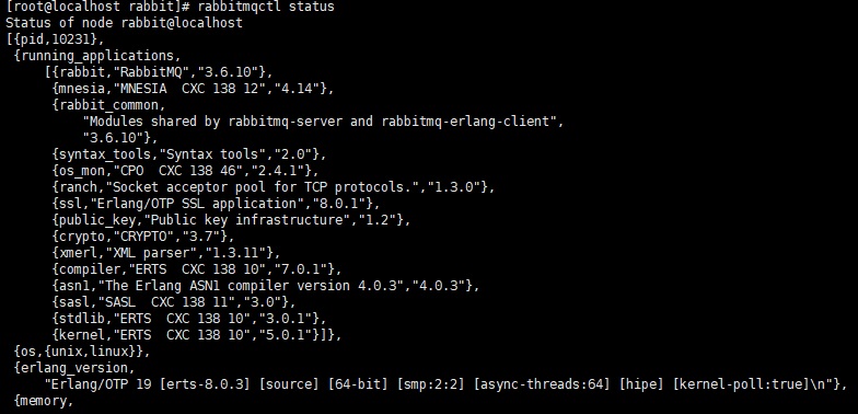 {rabbit, \[{loopback_users, \[\]}\]}\]. 也可以 cp /usr/share/doc/rabbitmq-server-3.6.10/rabbitmq.config.example /etc/rabbitmq/rabbitmq.config 63行 修改成 {loopback_users, \[\]}  4、启用web插件: rabbitmq-plugins enable rabbitmq_management 在 http://127.0.0.1:15672 使用guest,guest 进行登陆web页面了 5、 以守护方式启动 rabbitmq-server -detached /或者使用 systemctl start rabbitmq-server 查看守护方式启动后的进程 rabbitmqctl status **只能使用下面命令** 查看 rabbitmq是否正在运行状态 systemctl status rabbitmq-server 启动 systemctl start rabbitmq-server 停止 systemctl stop rabbitmq-server ================================================= 其他的命令 启动服务:rabbitmq-server-detached【/usr/local/rabbitmq/sbin/rabbitmq-server -detached 】 查看状态:rabbitmqctl status【/usr/local/rabbitmq/sbin/rabbitmqctl status 】 关闭服务:rabbitmqctl stop【/usr/local/rabbitmq/sbin/rabbitmqctl stop 】 列出角色:rabbitmqctl list_users ============================================ service rabbitmq-server start service rabbitmq-server status /或者用 systemctl status rabbitmq-server.service  -------------------------------------------------------------------------------- wget https://github.com/rabbitmq/erlang-rpm/releases/download/v23.2.6/erlang-23.2.6-1.el7.x86_64.rpm wget https://github.com/rabbitmq/rabbitmq-server/releases/tag/v3.10.7/rabbitmq-server-3.10.7-1.el8.noarch.rpm