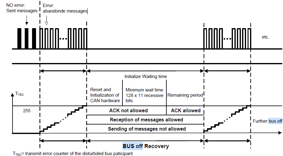 快恢复和慢恢复过程是强制的,所有周期型混合型的报文要在ECU离开Busoff之后尽可能快的发送出来。