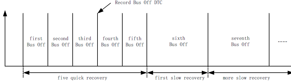 ECU首次进入BusOff需执行快恢复,五次连续的快恢复(连续的快恢复是指两次快恢复之间该ECU未发送任何正常报文)之后再次进入Bus Off故障需执行慢恢复。