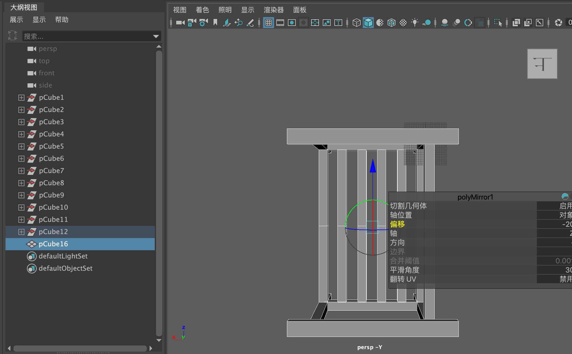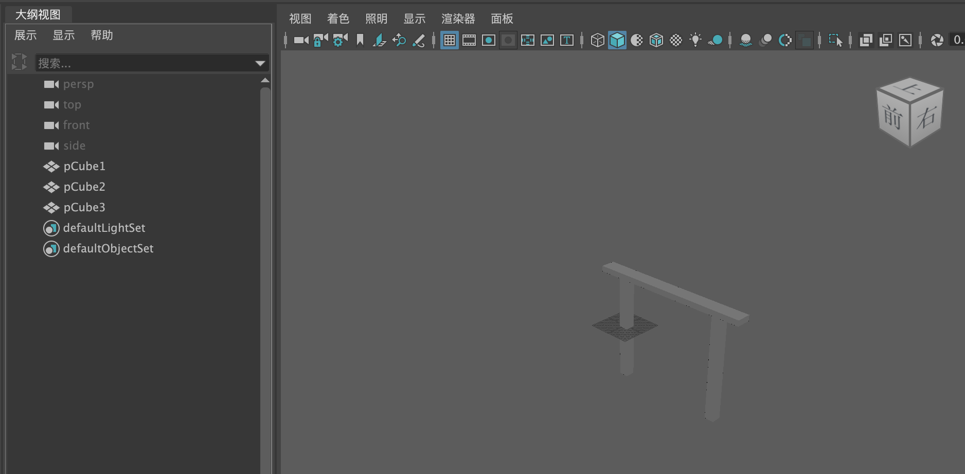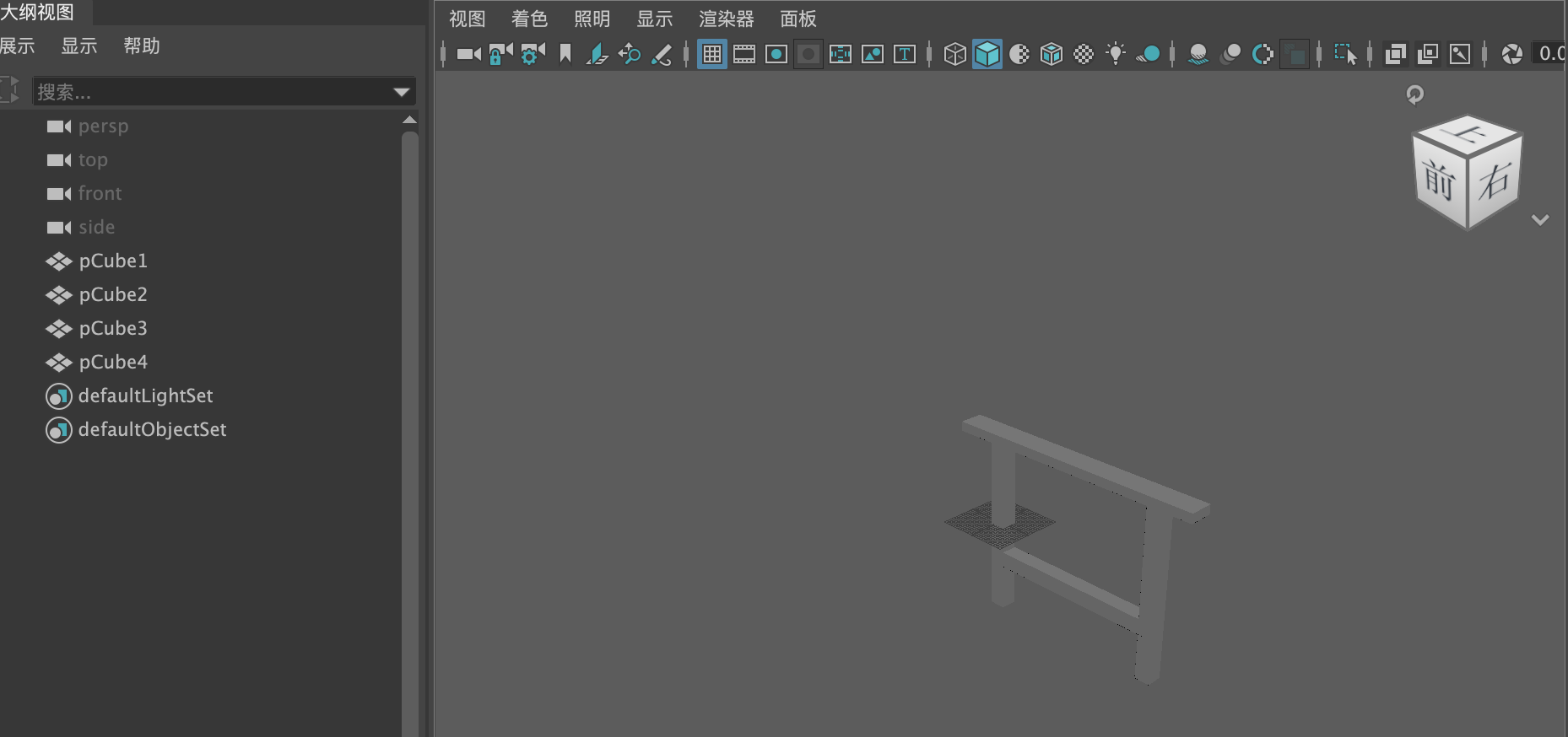 (8)将场景中的所有长方体模型一起选中,单击"多边形建模"工具架上的"结合"图标,将其合并为一个整体模型