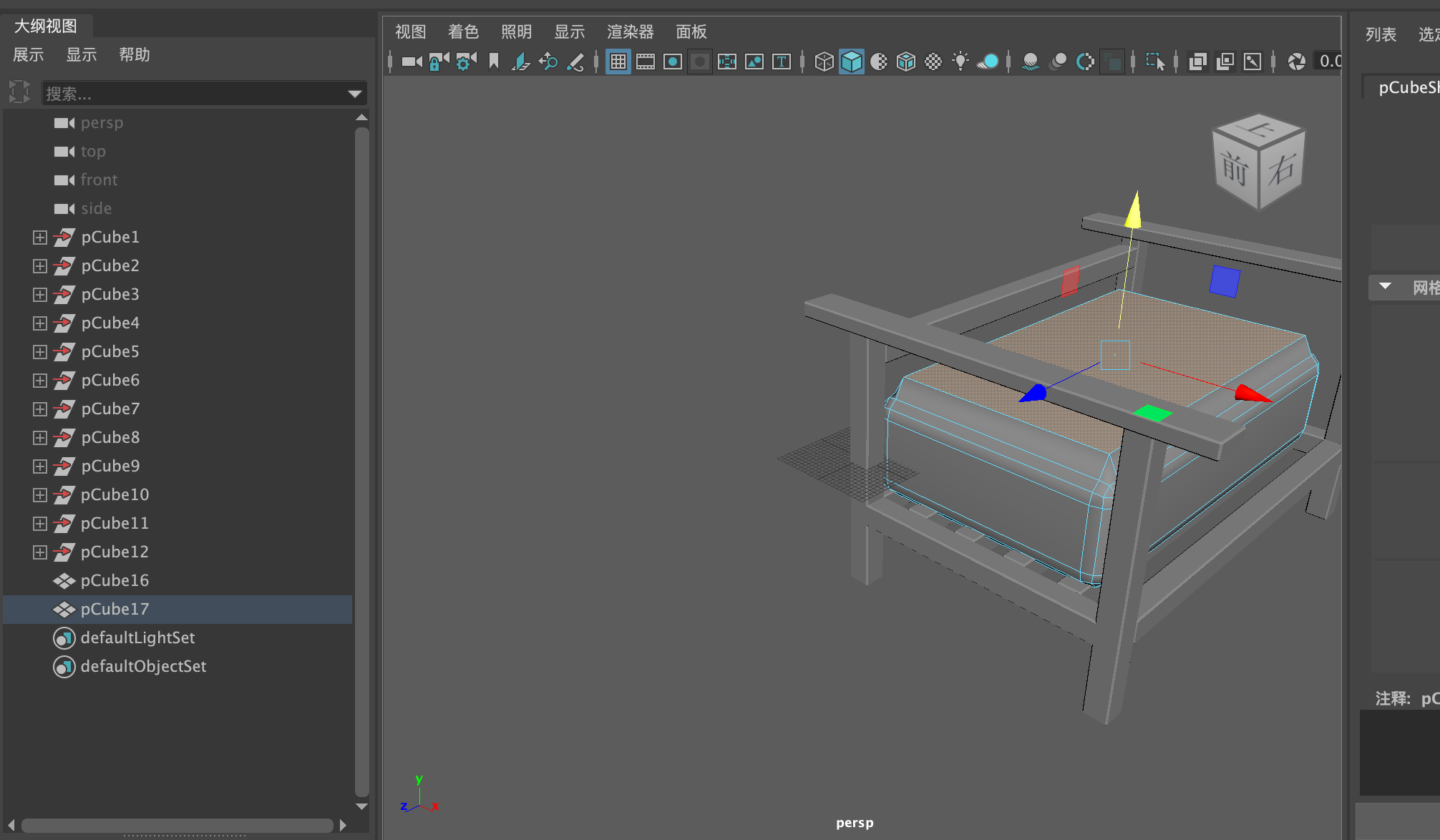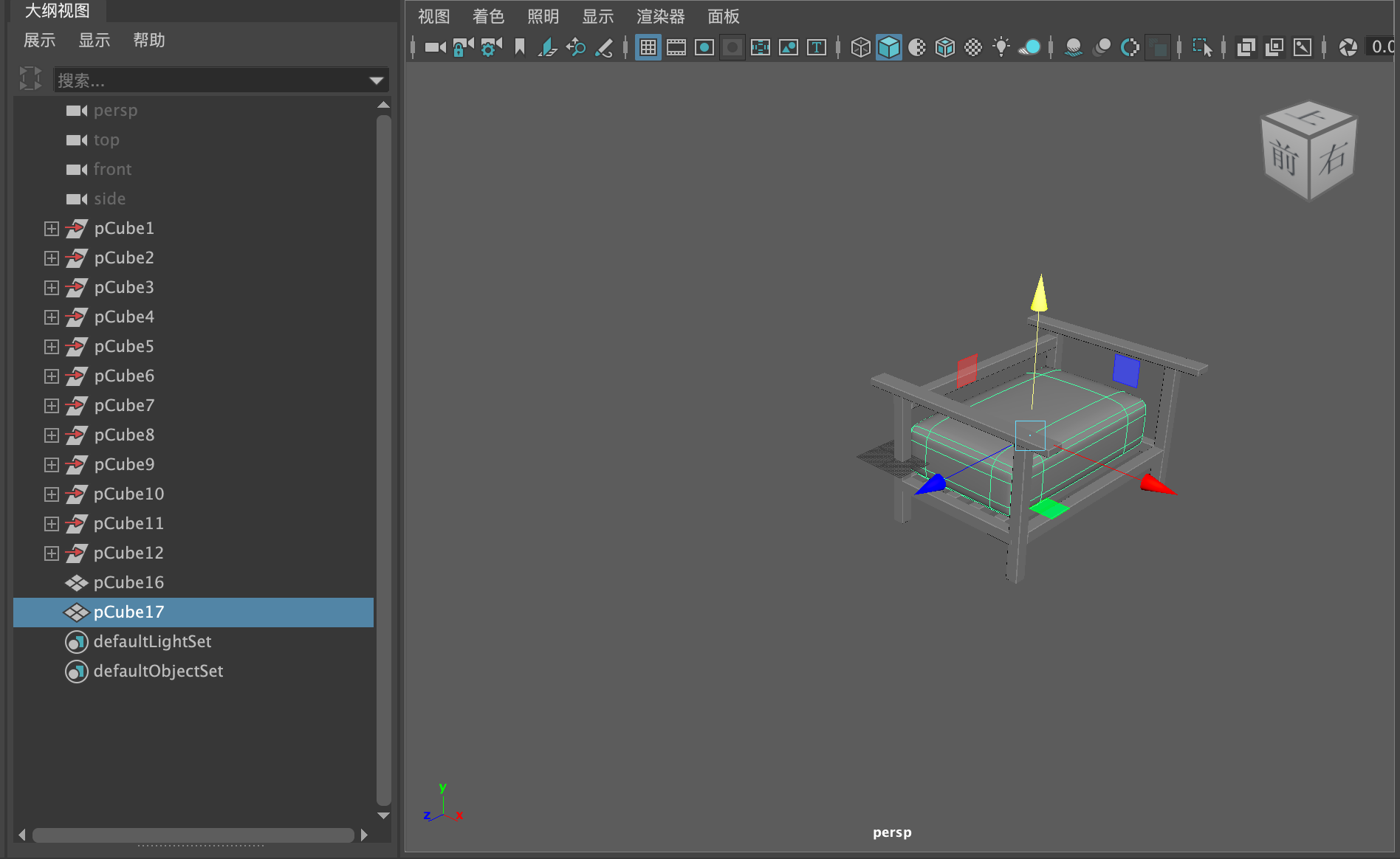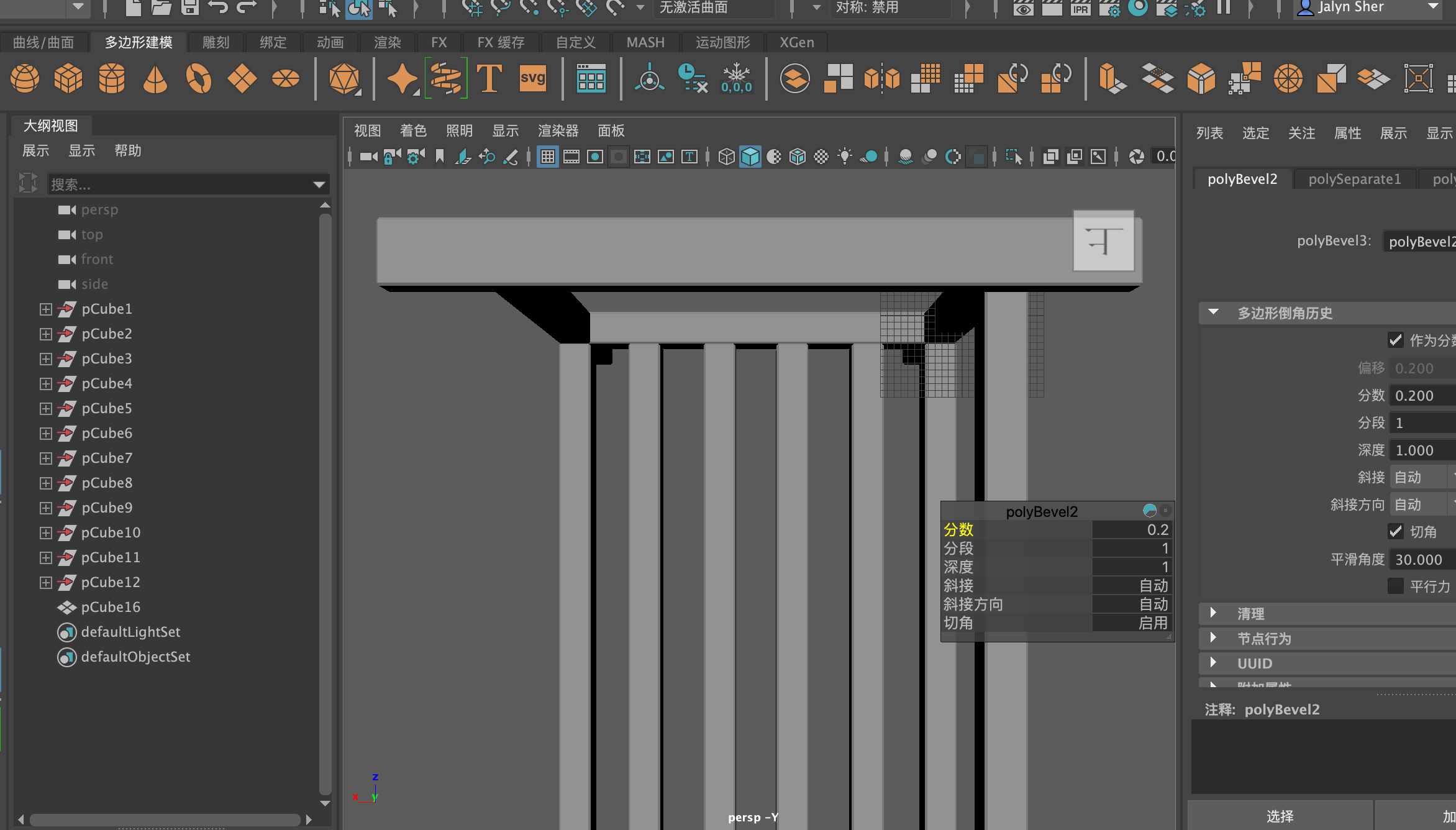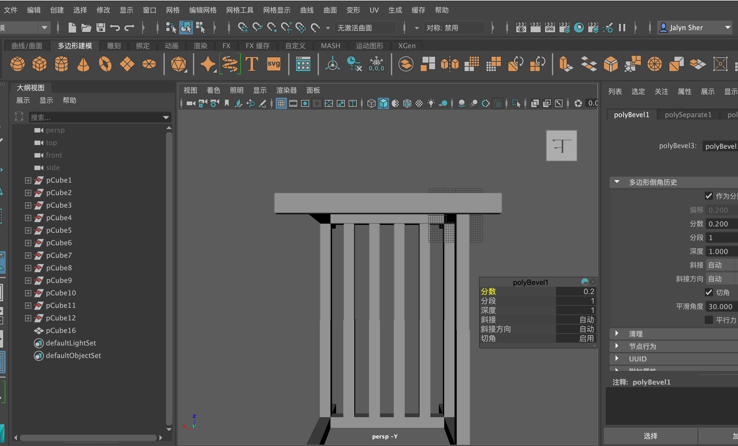 (8)将场景中的所有长方体模型一起选中,单击"多边形建模"工具架上的"结合"图标,将其合并为一个整体模型