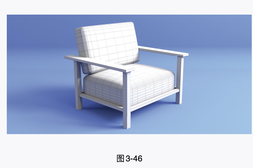 在本实例中,我们通过制作一个沙发模型来学习多边形建模技术,本实例的最终渲染效果如图3-45所示,线框渲染效果如图3-46所示。