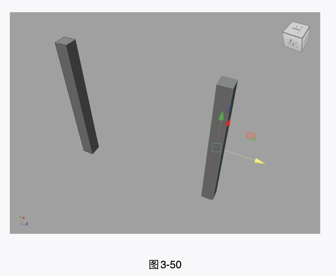 (5)在场景中再次创建一个长方体模型,并调整其大小和位置,如图3-51所示。