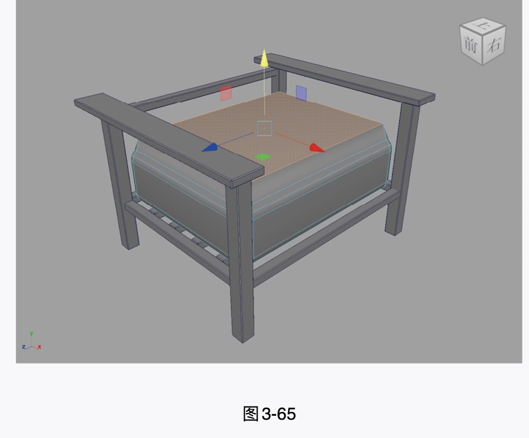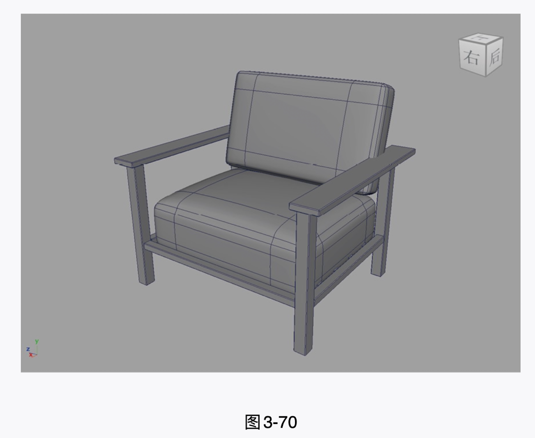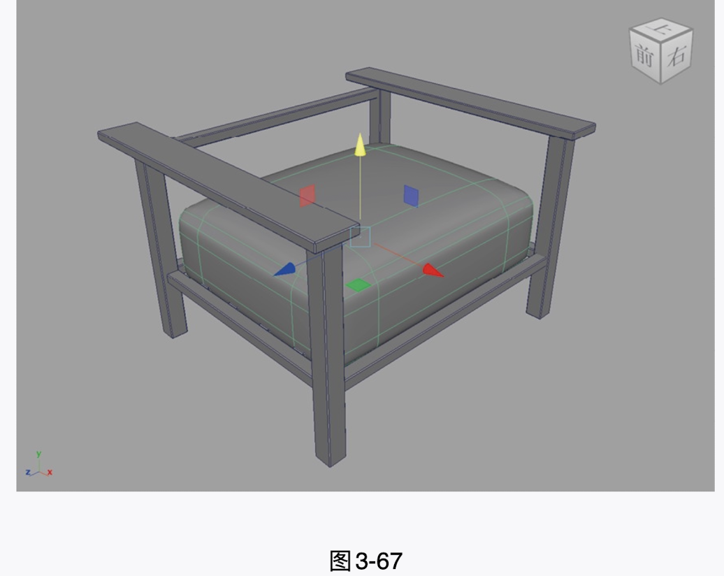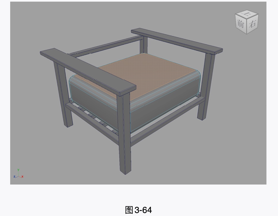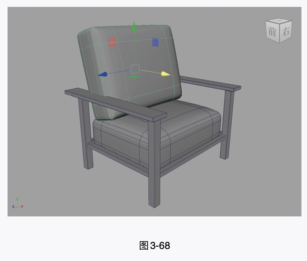 (16)将制作完成的坐垫模型复制出一个,并调整位置和大小,如图3-68所示,制作出沙发的靠背结构。