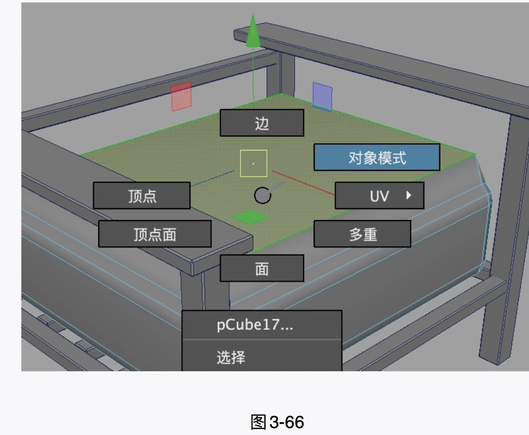 (15)设置完成后,按住鼠标右键,在弹出的命令菜单中执行"对象模式"命令,退出模型的编辑状态,如图3-66所示,再按3键,对模型进行平滑操作,得到图3-67所示的模型。