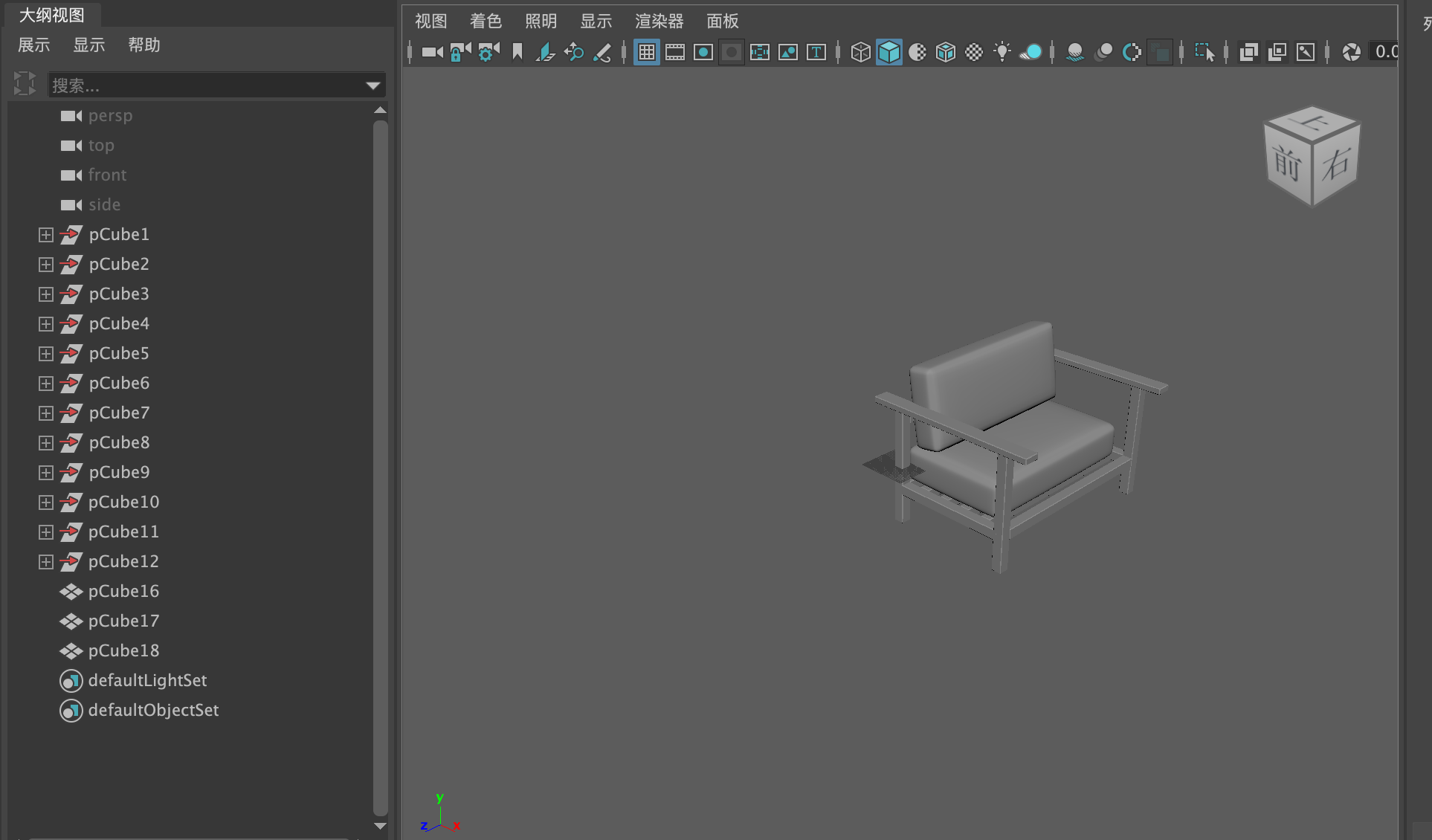 (12)在场景中创建一个长方体模型,并调整其大小和位置,用来制作沙发的坐垫。