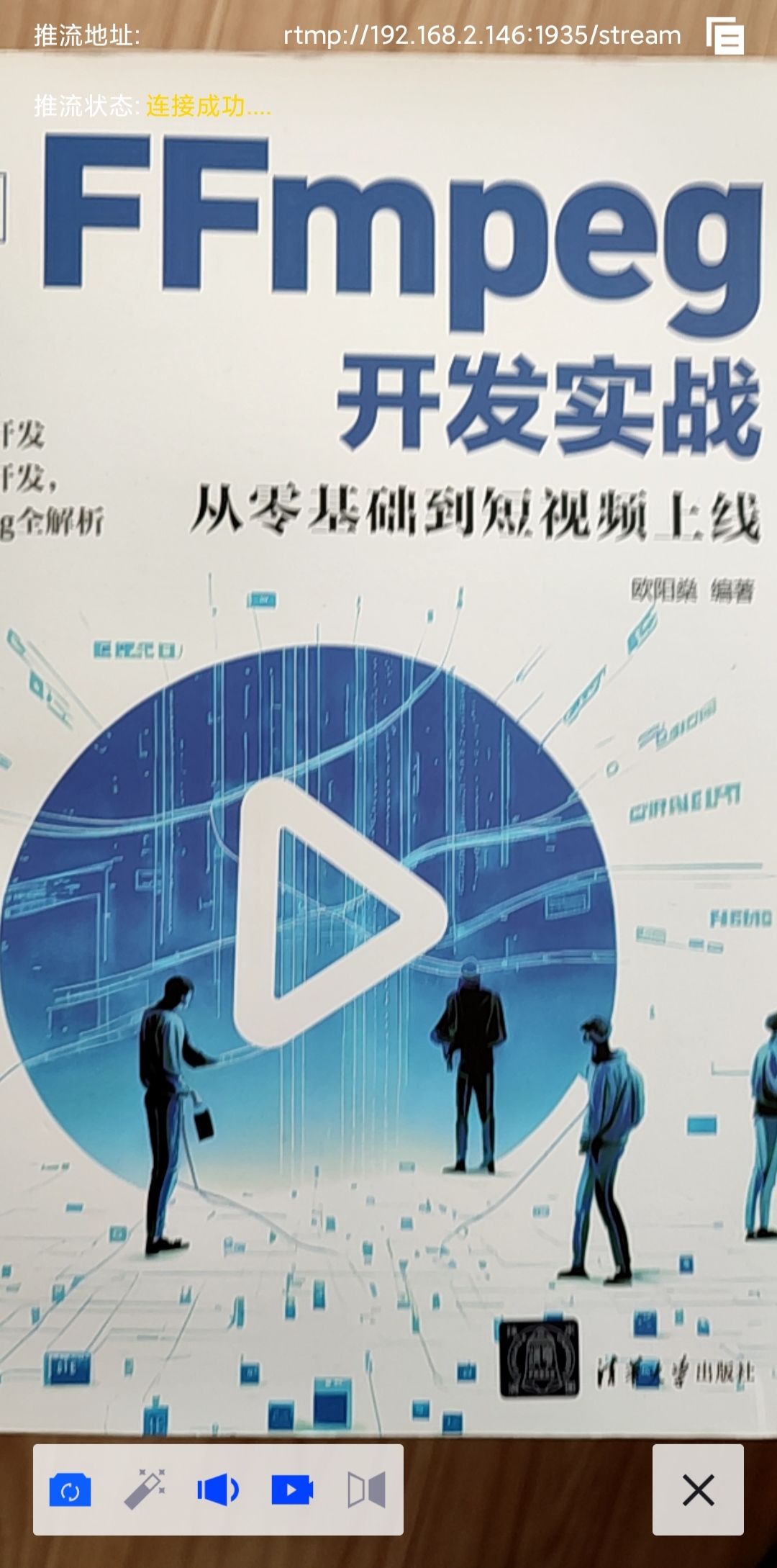《FFmpeg开发实战:从零基础到短视频上线》一书的"10.2.2 FFmpeg向网络推流"介绍了轻量级流媒体服务器MediaMTX,通过该工具可以测试RTSP/RTMP等流媒体协议的推拉流。可是在此之前,得先有一个推流工具向MediaMTX推送视频流,这样末端的拉流程序才能从MediaMTX源源不断地拉取视频流。那么Android手机可使用anyRTC从摄像头实时采集视频信号,并向后端的MediaMTX持续推送视频数据。