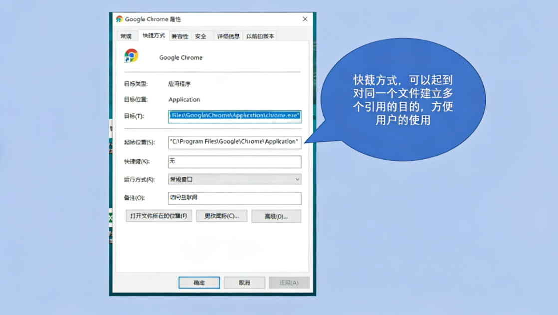Windows操作系统上,还有一类文件比较特殊,就是平时我们看到的快捷方式(shortcut),这种文件只是对真实文件的一种引用而已。其他操作系统上也有类似的概念,例如,软链接(softlink)等。